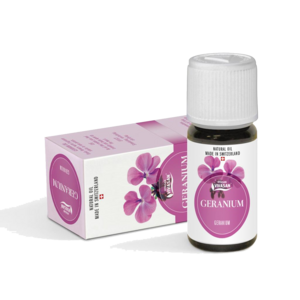 Эфирное масло герани египетской очень популярно на Востоке. Его свой целебные свойства знали очень давно. И до сих пор оно пользуется большим спросом ввиду широкого спектра воздействия на организм. Получается методом паровой перегонки всех частей растения. Имеет свежий, цветочно-розовый теплый аромат. В его состав входят довольно большое количество очень активных компонентов, определяющих различные эффекты воздействия — это гераниол, цитронеллол, ментол, геранилтиглинат и др.