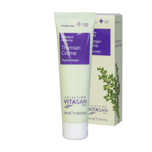 Крем ТИМЬЯН является, прежде всего, идеальным средством от простуды (экстракт тимьяна входит в состав препарата пертуссин). При нанесении на область носогубного треугольника, спину и грудь крем благоприятно действует на дыхательные пути. Снимает спазм бронхов, обладает дезинфицирующим, противовоспалительным, отхаркивающим и иммуностимулирующим действием, благодаря наличию хвойных масел: сосны, пихты, эвкалипта, кипариса.