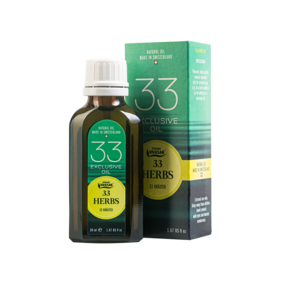 Массаж: Снимает судороги, мышечные боли и растяжения. После физических упражнений масло предотвращает появление болей от напряжения мышц. При люмбаго масло приносит быстрое и значительное облегчение . Масло 33 травы можно применять как в чистом виде, так и в смеси с массажным или функциональным маслом для кожи: 25-30 капель эфирного масла на 50 мл функционального.
